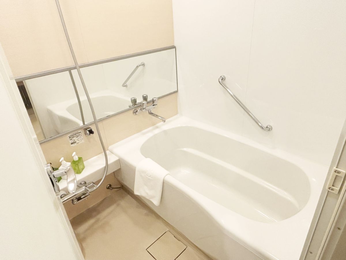 バスルームには、大人もしっかり足を伸ばして浸かれる湯船が。シャワースペースと湯船が分かれているのは、結構うれしいところですよね。大きくゆとりのあるバスルームなので、家族連れで宿泊する際にも安心です。