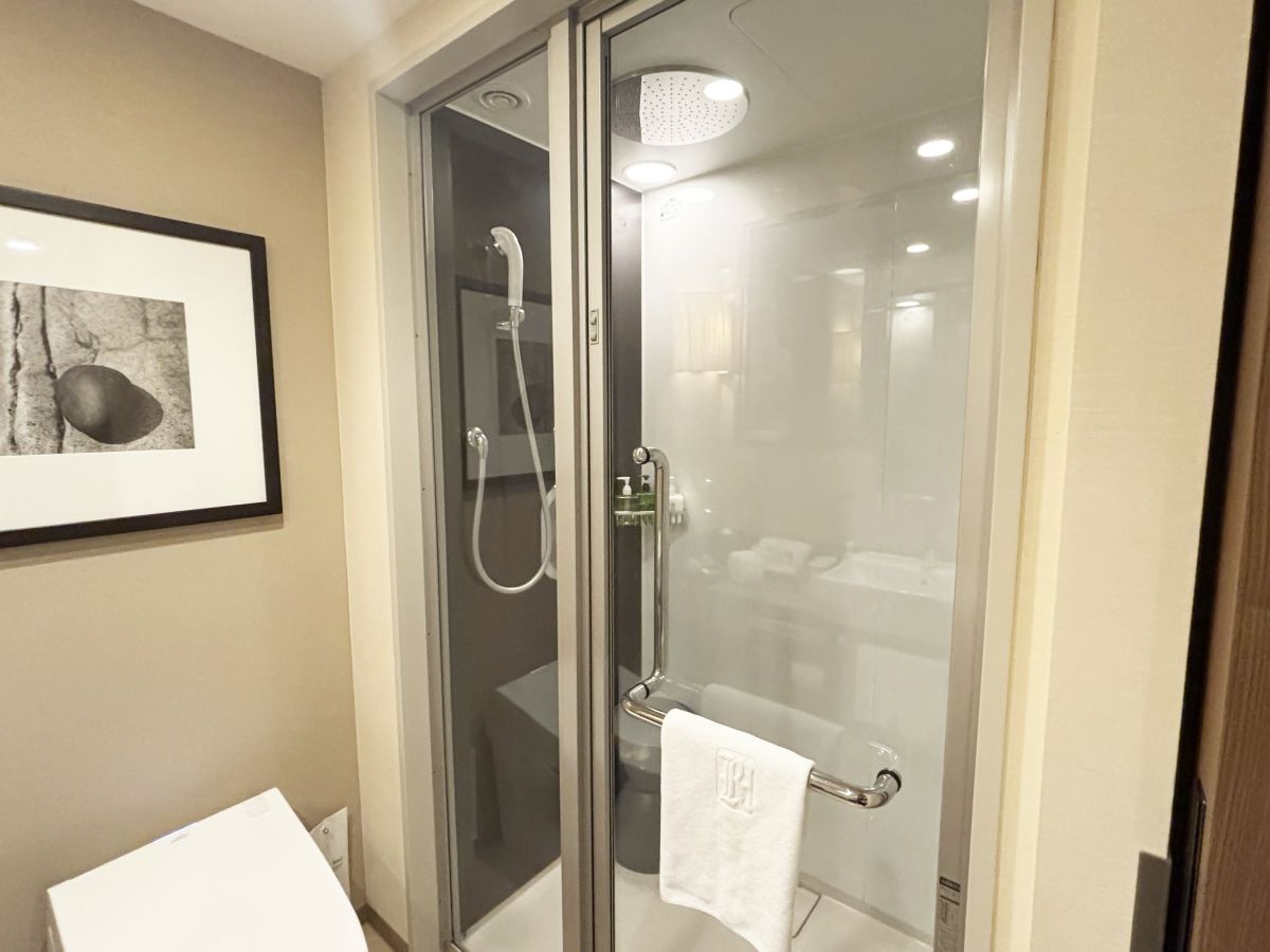 フォーラスタイプのシャワールームは、機能的な造りながら結構な広さがあるので、窮屈感なく使えます。トイレや洗面所とはドアで区切られているのも、うれしいポイント。