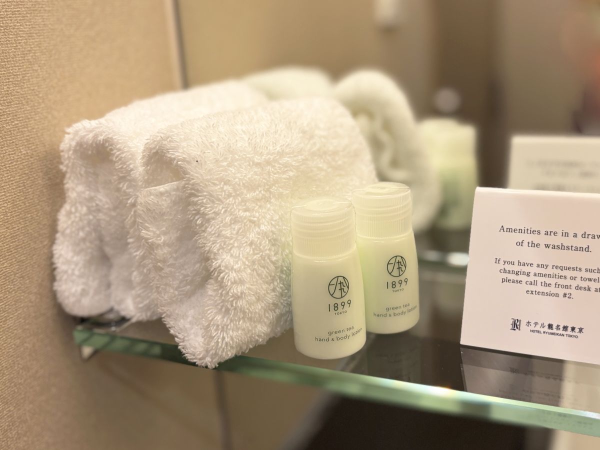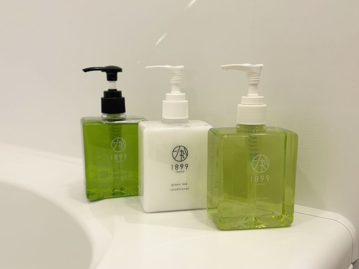 ボディソープやシャンプー・コンディショナーには、日本のお茶文化をテーマに、龍名館が手がける「ホテル1899東京」で使用しているものを採用。グリーンティーの香りが広がり、バスタイムがより充実したものになります。