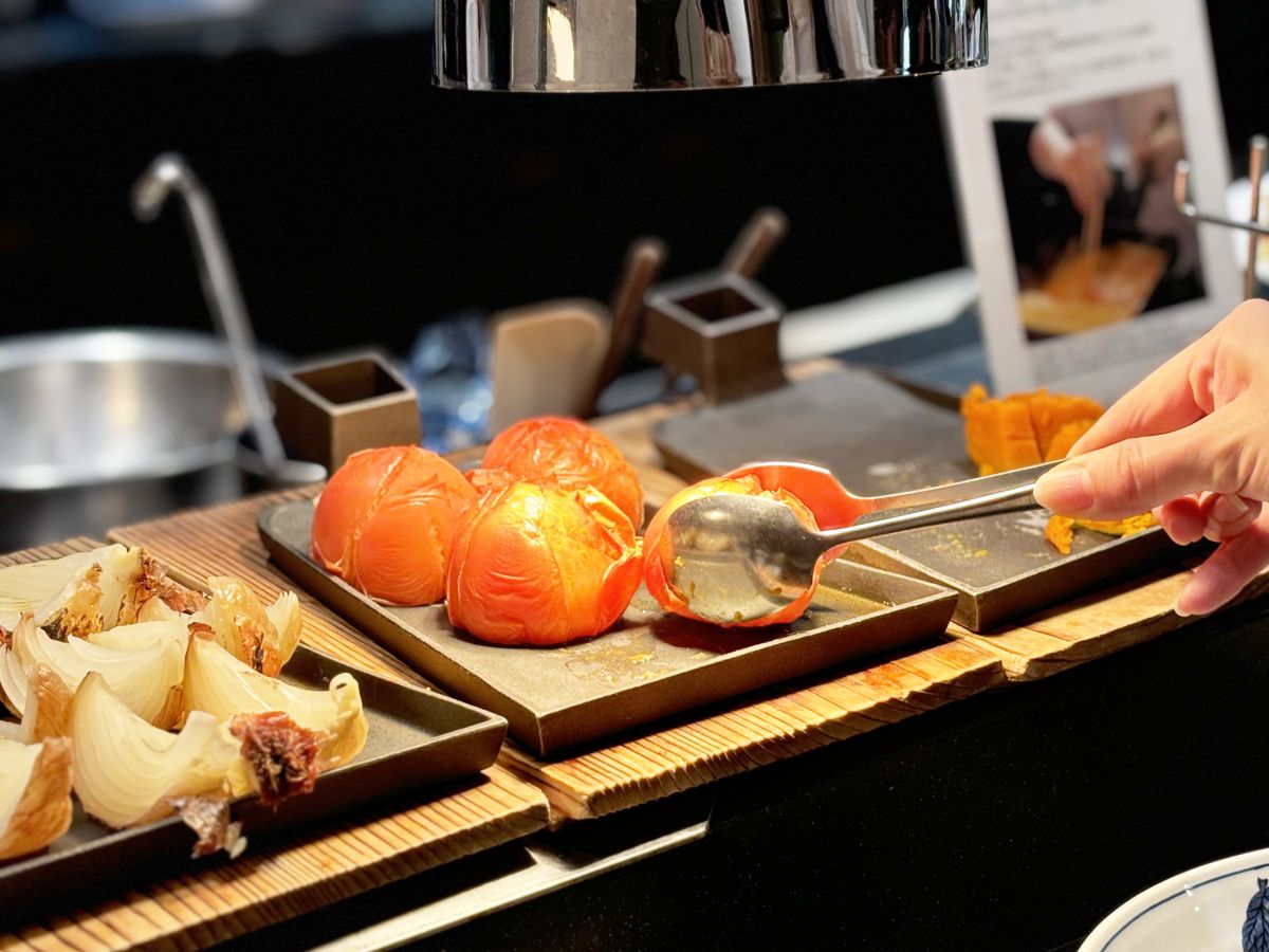 フレッシュのサラダとしていただくのももちろんいいですが、ホテルならではの「野菜しゃぶしゃぶ」がおすすめ。用意されているお鍋に野菜を入れれば、野菜本来のうま味をより楽しめます。