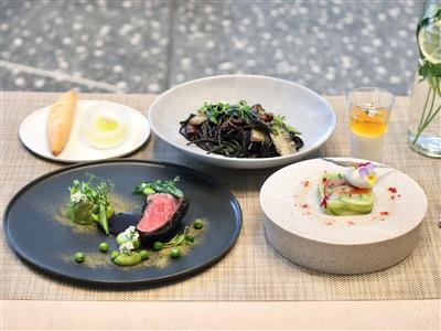 東京京橋のアーティゾン美術館の1階に入るカフェ。天井も高く大きなガラス窓を配した開放的な空間で、ゆったりとした時間とアートな料理を楽しむことができます。前菜・メイン・プチデザート(飲み物付)が選べる「Bコース」3800円は、ランチ・デイナーともに味わえる人気メニュー。ランチタイムは予約がベター。予約は公式サイトからのみ受付が可能です。