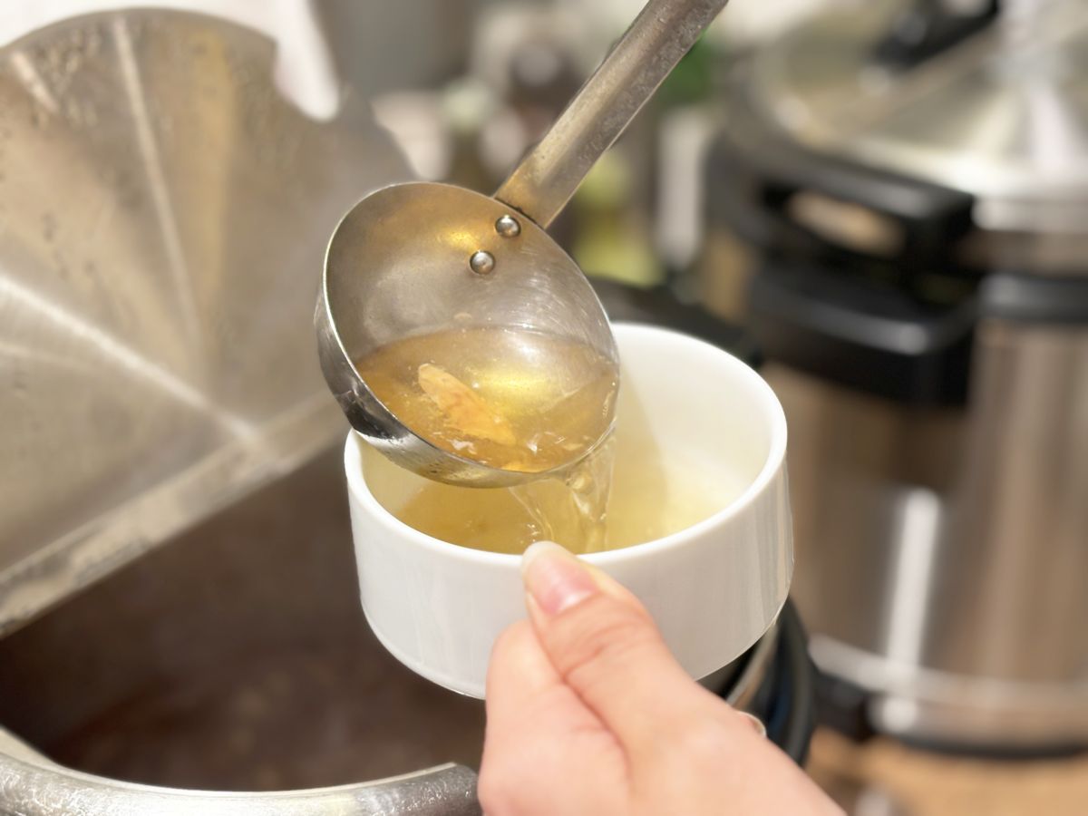 12時間以上煮込んだ特製「丸鶏スープ」でほっとひと息つくのも◎。ひと口含めば、やさしいだしのうま味が体にしみます。