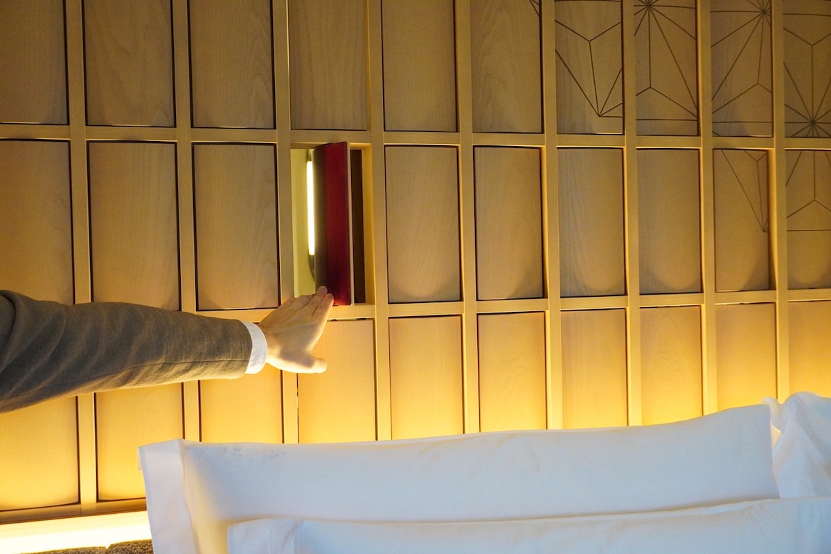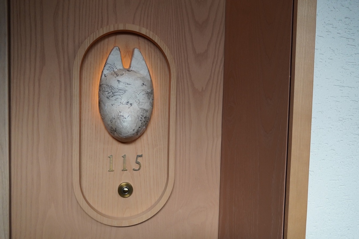 部屋のアイコンはキツネのデザインです。通常は点灯しているのですが、掃除をしてほしい時、起こさないでほしい時はキツネの目が消えて合図をしてくれます。シックスセンシズでは、地域の環境や文化の保護という観点から、その土地の動物をキャラクターに用いており、ここ京都では民話や伝説に登場する狐がモチーフとなっています。