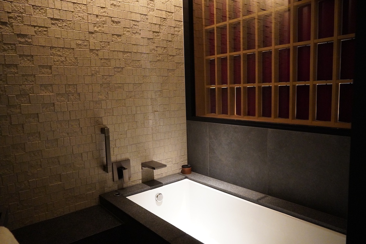 バスルームも和の雰囲気です。水圧の強いシャワーも完備され、シャワー派、バスタブ派どちらも快適。