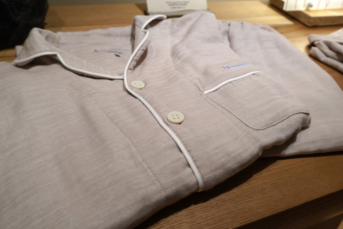 ルームウェアは上下セパレートタイプ。アスリートも着ていることで知られる「テンシャル」とコラボしたもので、血行を促進して疲労回復が期待できる機能性パジャマなんです。