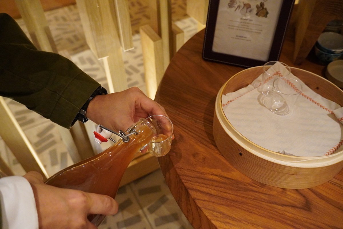 ランチやディナーのコース、そしてアフタヌーンティーは二十四節気に合わせて2週間ごとに変わります。和洋の調理法を取り混ぜたオリジナル料理で、地場野菜に酒粕などの発酵食品を用いたり、昔ながらの製法で作られた調味料を用いたり、体によい料理を堪能できます。