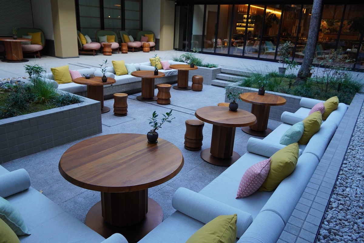 テラスに出ると中庭の緑が目に飛び込んできました。さわやかな風を感じながら、ソファに座ってプチ瞑想タイム。深呼吸するごとに心が穏やかになっていきます。
