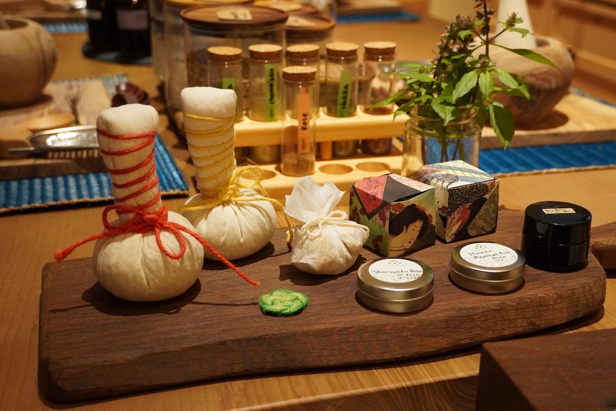 ワークショップのプログラムは、保湿バームやスクラブ、麹を加えたハーバルボールなど、持ち帰って日々の美容や癒やしに使えるものばかりです。宿泊者向けの無料のものと、スパプログラムに含まれるものがあります。