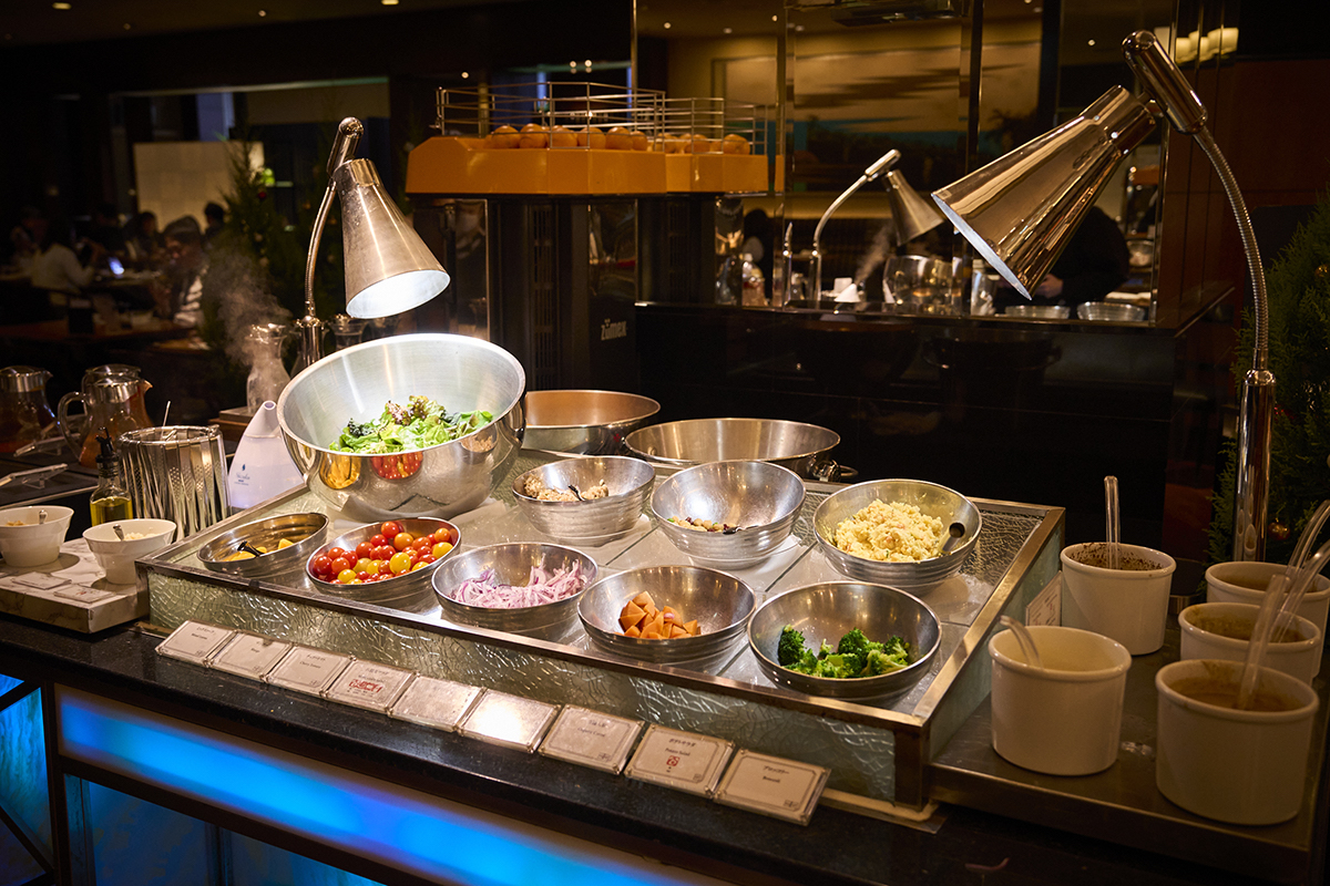 サラダバーには、山梨県上野原市にあるホテルニューオータニ専用の畑で収穫される完全無農薬の野菜が並びます。野菜の恵みがギュッと詰まった凝縮された味で、一日のパワーをチャージしてくれますよ。