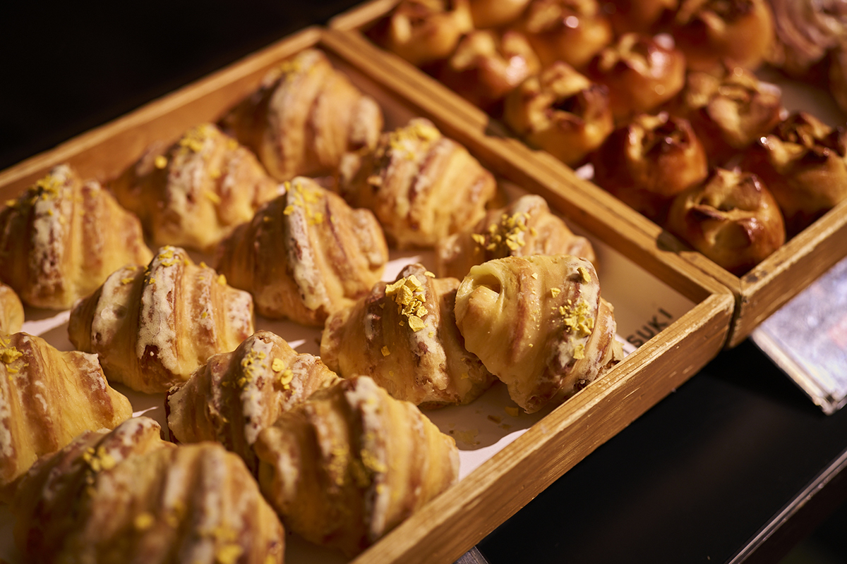 「ピエール・エルメ・パリ」のヴィエノワズリーは、「クロワッサン サティーヌ」「ブリオッシュ オ プラリネ」「パンオレザン エ カネル」の3種類。パンの域にはとどまらない、まるでスイーツのようなリッチな味わいです。起きたての体にほどよい甘さが染み渡り、なんとも幸せな気分に。