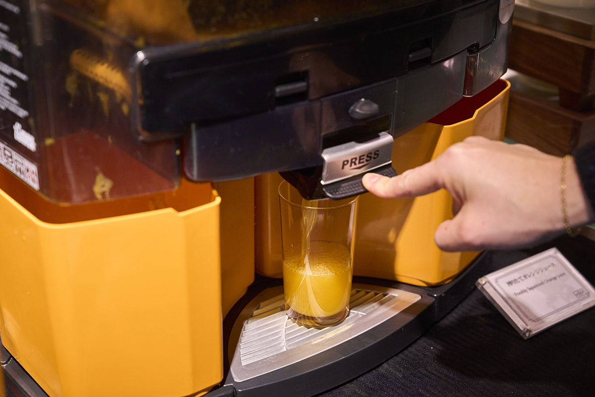 なかでもぜひ飲んでほしいのが、生オレンジをそのまま絞った状態で味わえる、フレッシュオレンジジュース。色も味も濃い! 朝の体をシャキッと目覚めさせてくれて、とてもおいしかったです。
