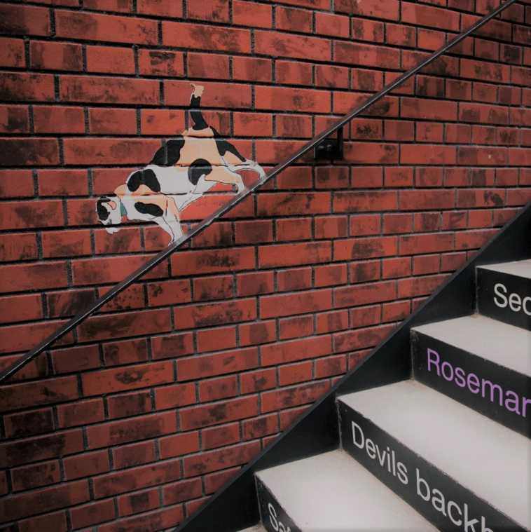 2階に向かう階段で出会ったネコ。モール内のアートな遊び心を探しながら散策するもよし!