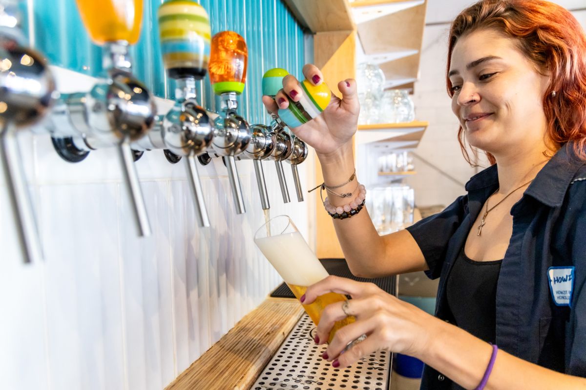 バーカウンターで注文すると、目の前でビールを注いでサーブしてくれるのもテイスティングルームならではの醍醐味。ビールにあまり詳しくない方や、どれを頼もうか迷った場合は、スタッフさんたちに訪ねてみて。好みに近いものをおすすめしてくれますよ。
