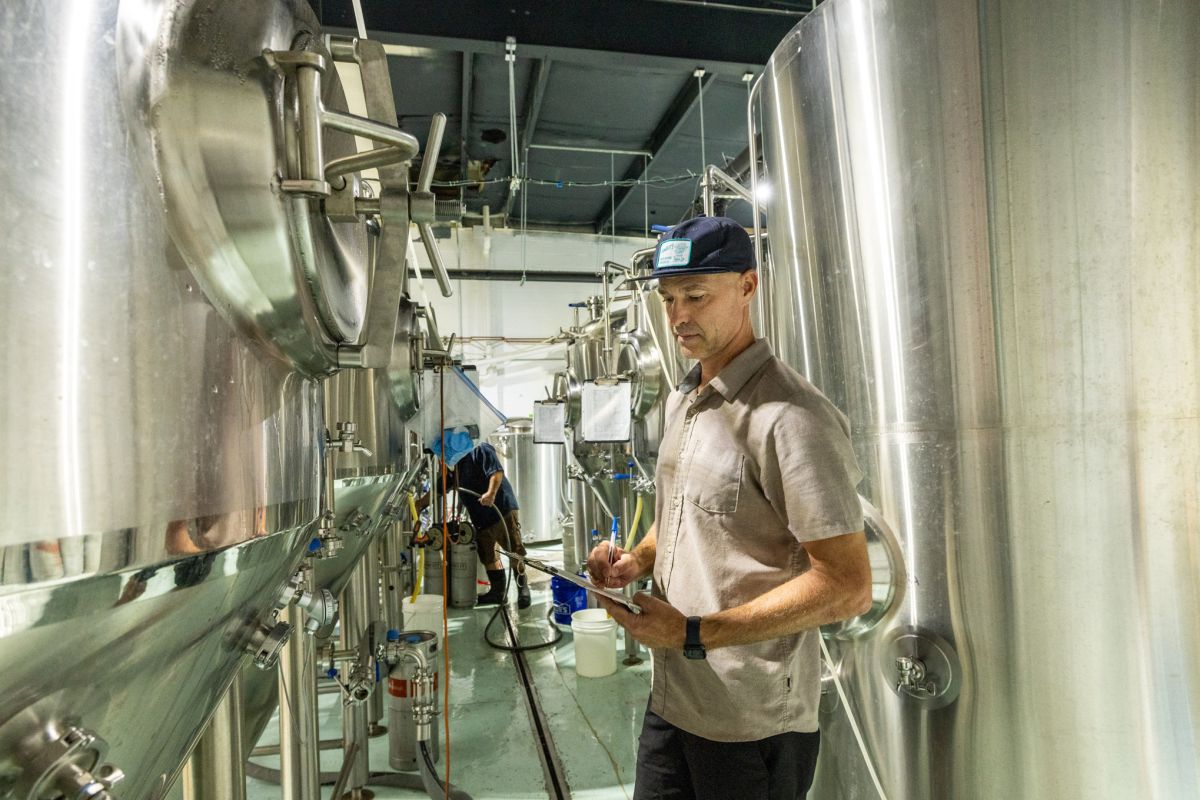 そして、ビールのクオリティを入念にチェックしているこちらの男性が、オーナーのジャスティン・ヘイッキネン氏。ジャスティンさんはオアフ島出身で、アメリカ西海岸でクラフトビール業界の経験を積んだのち、ハワイに戻り「ハウジット・ブリューイング」を開業しました。とても気さくで素敵な方なので、お店で見かけたら声をかけてみて!