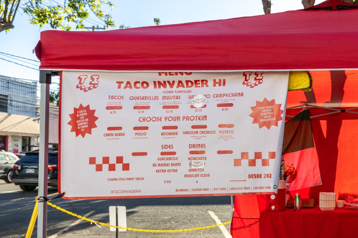 「ハウジット・ブリューイング」は、食べ物の持ち込みもOKですが、駐車場で営業しているフードトラックもぜひトライしてみて。日によってトラックの種類は異なり、撮影日(2024年12月)は、ティファナスタイルのメキシカンフードを楽しめる「タコインベーダー・ハワイ」が出店していました。