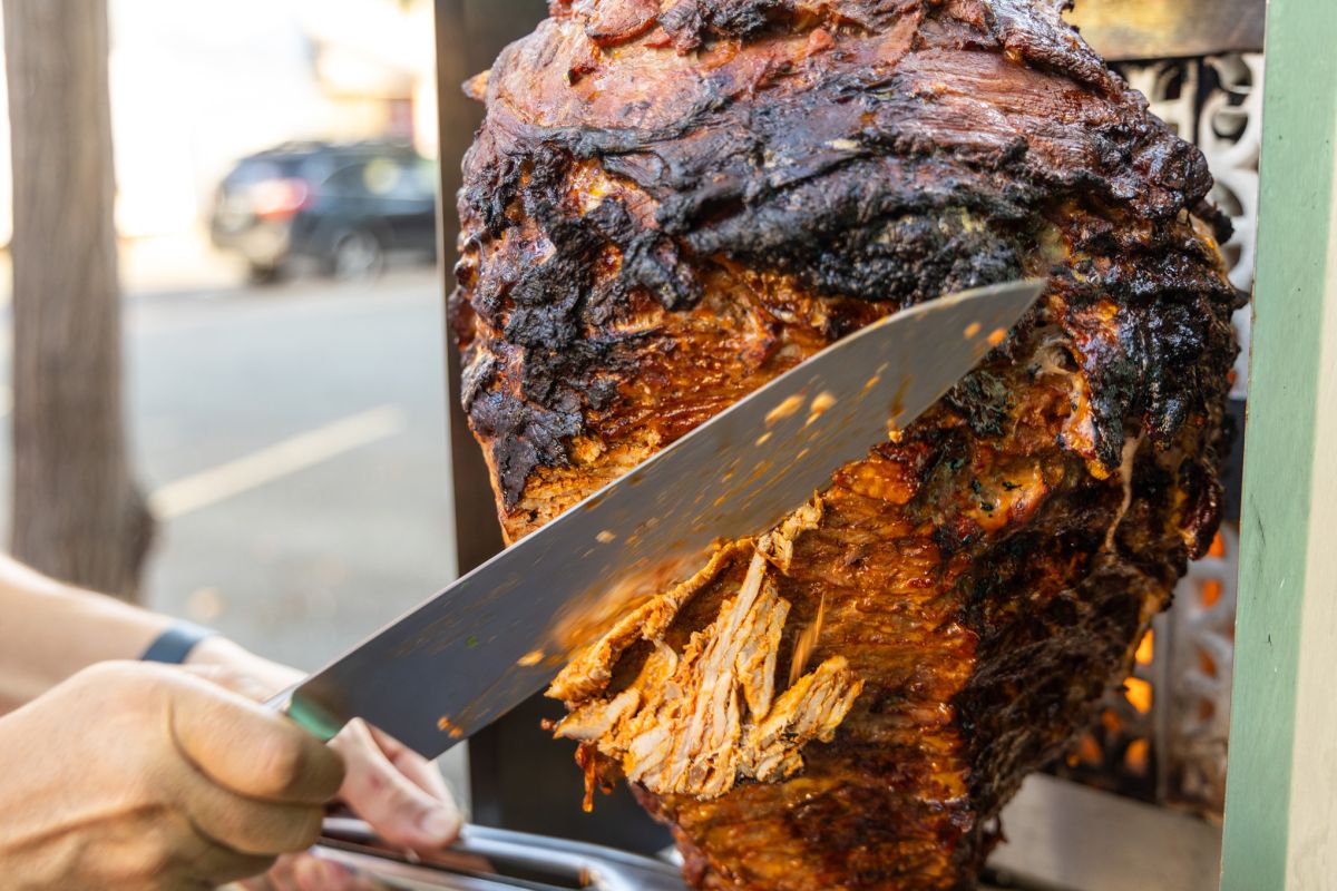 中でもおすすめのお肉は、マリネしたポークを香ばしくローストした「アドバーダ」。外はカリカリ、中はジューシーでクセになる味わいです。目の前でスライスしてくれるデモンストレーションも楽しい!