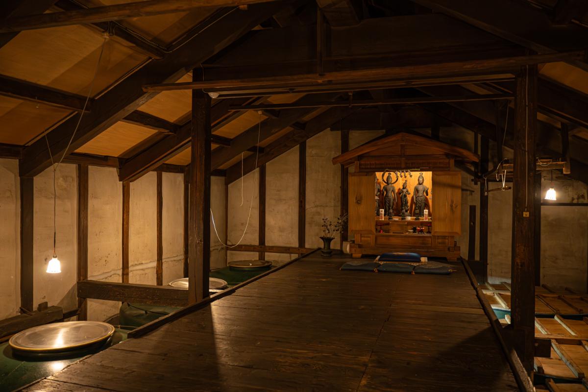 薬師蔵という作業場には、かつて富士山頂の仏堂に鎮座していた薬師如来像が祭られています。実はこの仏様、明治時代の神仏分離令によって、富士山では仏像の安置が許されないとなった時、処分するのは忍びないと、二代目当主が下山させたもの。通称「富士山下山仏」は、今も酒造りの最後の工程を見守っています。