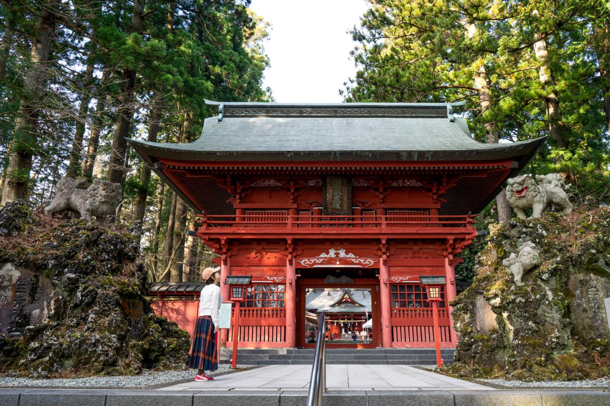 ホテルから車で約20分、大同2年(807)創建と伝わる「東口本宮 冨士浅間神社」へ。「須走浅間神社(すばしりせんげんじんじゃ)」ともよばれ、富士登山の東口である須走口登山道の起点として、古くから信仰を集めてきました。