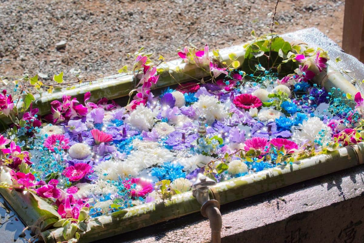 こちらでも2025年1月25日(土)~2月14日(金)、手水舎が花装飾で華やかに。火伏の神様である木花開耶姫は、女性の守り神、縁結び・安産の神様でもあるそう。2025年もいい出会いがありますようにとお参りしましょう。