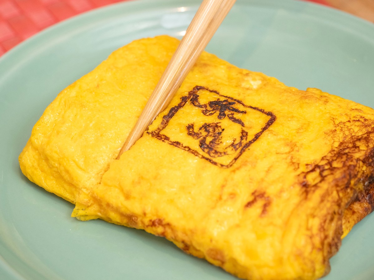 こちらがその青鬼。砂糖を使わず卵と一番だし、しょうゆ、塩だけで作る関西風だし巻き卵を「青鬼玉子焼き」とよんでいます。