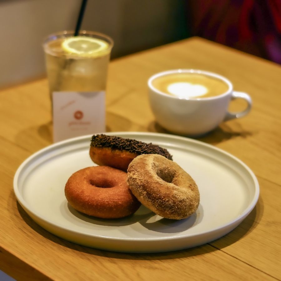 持ち帰って自宅でいただくこともできますが、キッチン前に設けられた客席では、ゆったりとカフェ時間を楽しみながらドーナツを味わうことができます。