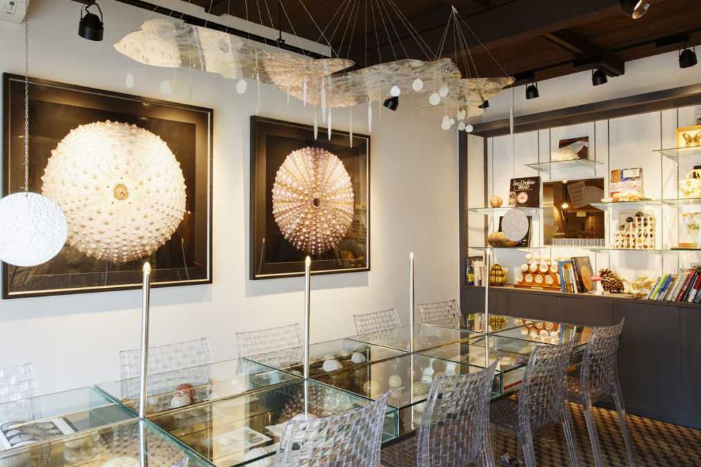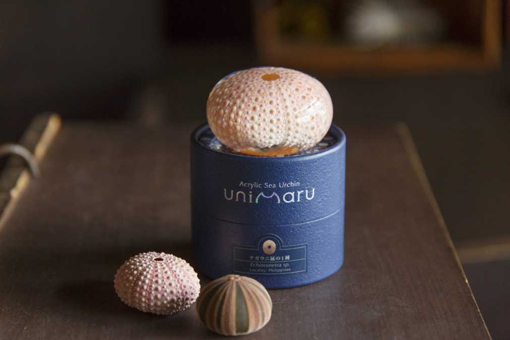 ショップでは、ウニの骨や植物の花や実を透明のアクリルに封入したオリジナルプロダクトの販売もしています。植物は「Sola cube」、ウニは「Unimaru」と名付けられ、他には鉱物のシリーズも。インテリアオブジェやギフトとして人気を集めています。