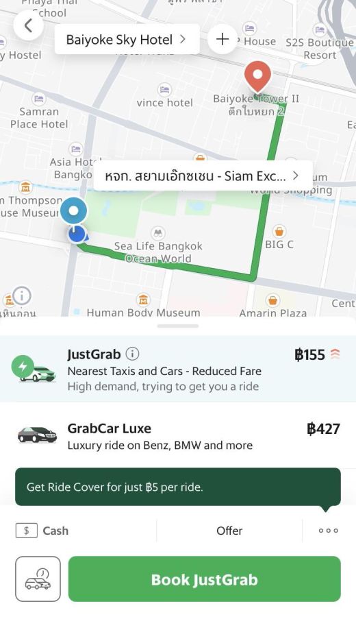 スマートフォンひとつでタクシーが呼べる配車アプリ「Grab」は、タイ旅行で超有能。乗車前に目的地を指定すれば料金も決まるので、面倒な料金交渉なし!運転手と事前に目的地を共有できるので、会話に自信がない人でもご安心を。