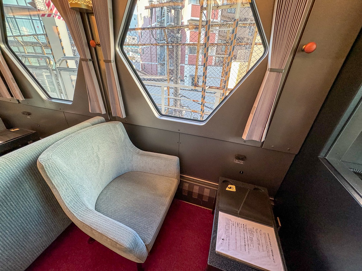 6号車のコックピットスイートは1列車に1室限定で、貸し切り利用ができるそう。プライベートなご褒美旅にもぴったりです。