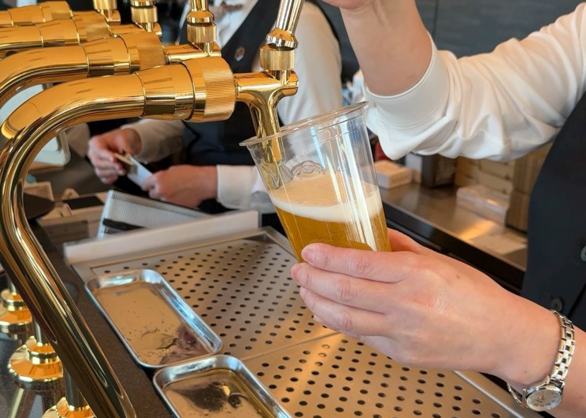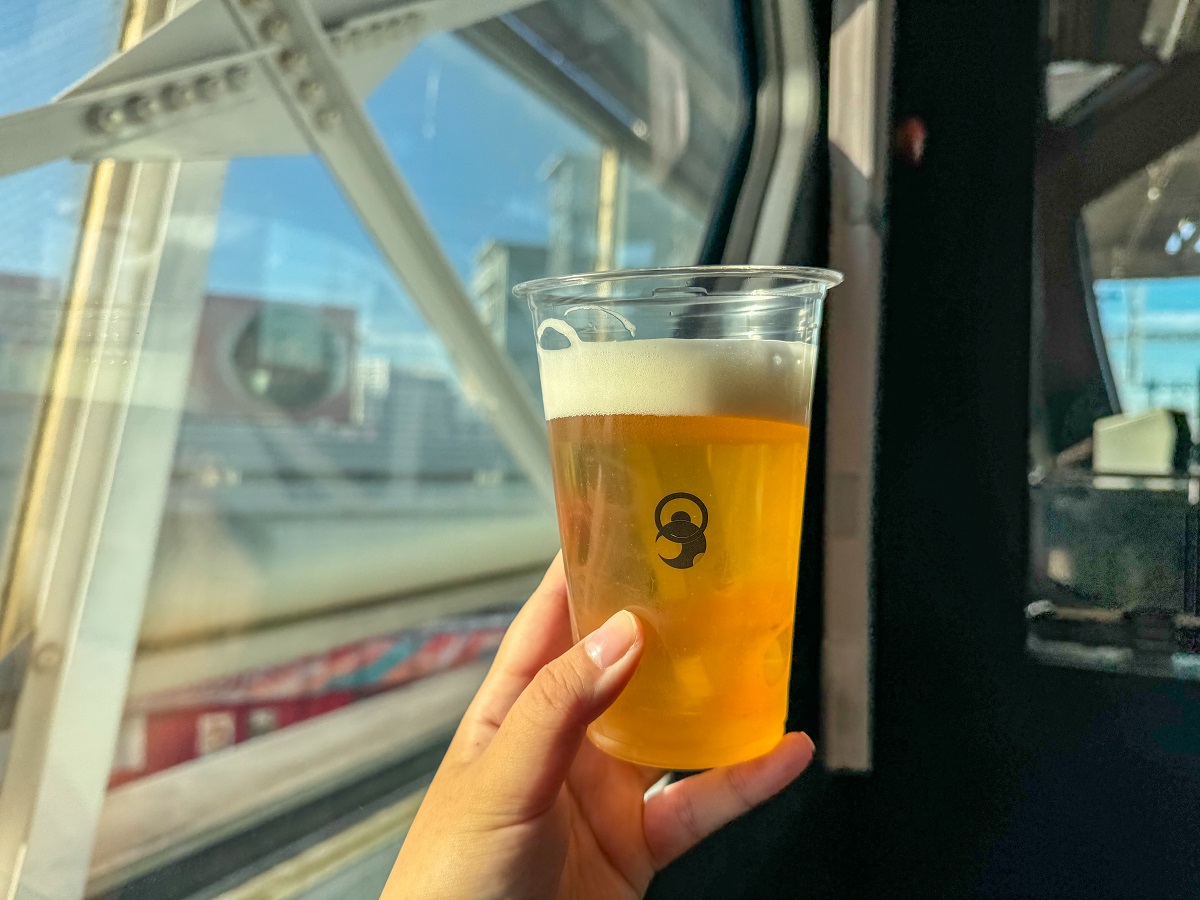 今回は、スペーシア X特別醸造「NIKKO LAGER」1/2パイント 800円をチョイス。サーバーでつぎたてのビールを車内で楽しめるなんて…贅沢すぎます。
