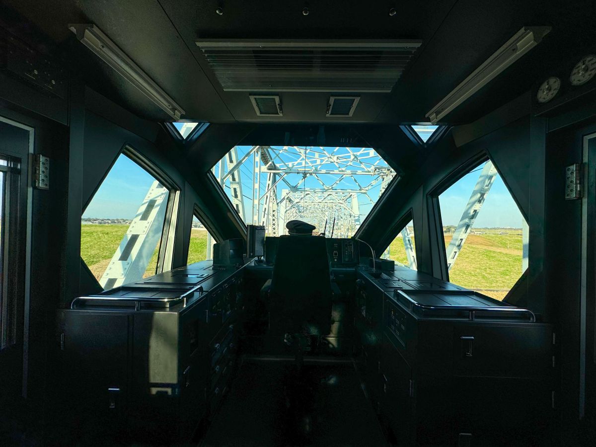 運転士さんの荷物を収納するスペースも設けられていて、視界を遮ることなく運転席を見ることができます。
