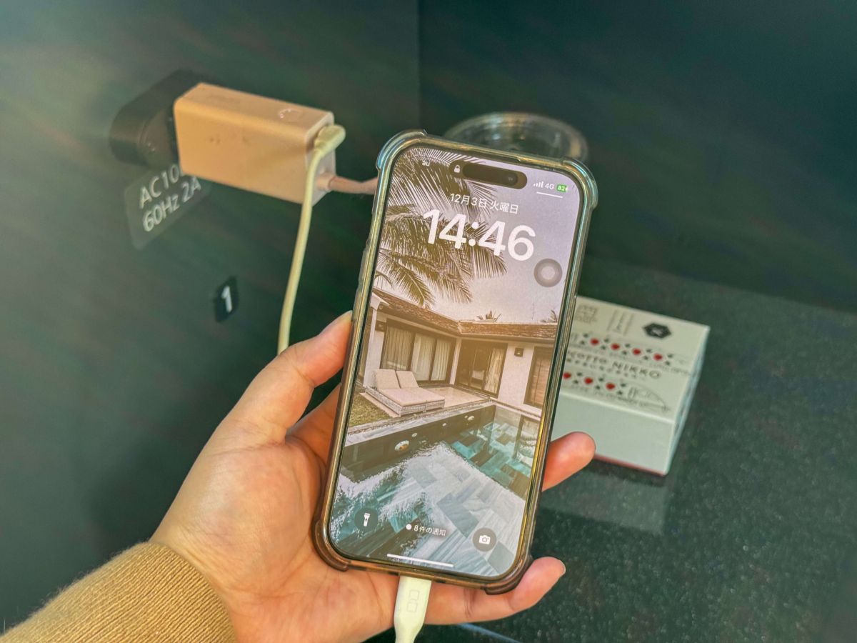 座席にはコンセントも完備。一人掛けソファーは座り心地抜群で、こんなに優雅に鬼怒川に向かうことができるなんて、感動です。