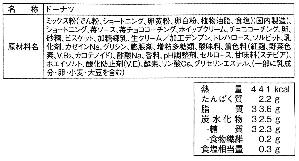 気になるカロリーは1個あたり、441Kcal、糖質は32.3gです。