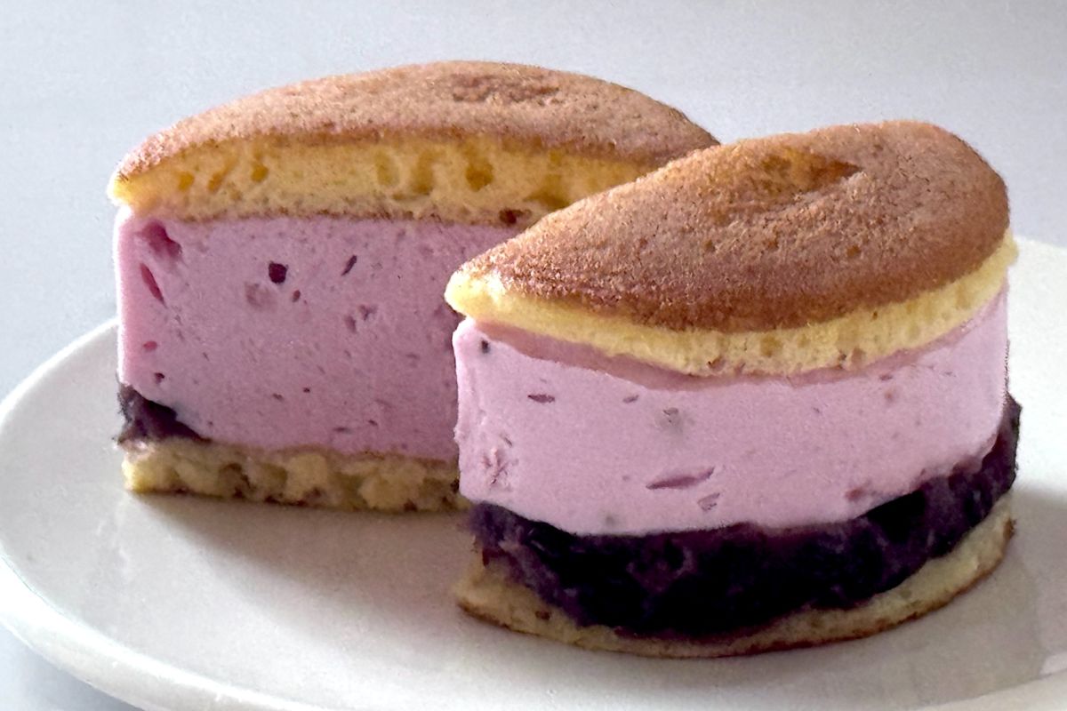 和スイーツ!「極厚 どら焼きバーガー(いちごムース&つぶあん)」