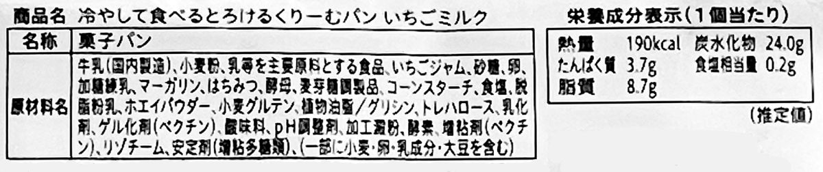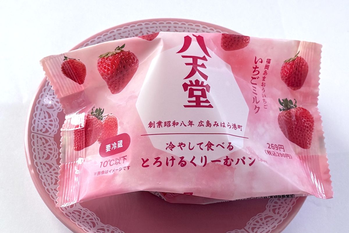 「八天堂冷やして食べるとろけるくりーむぱん いちごミルク」290円。