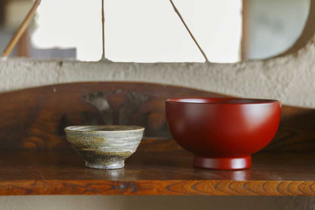 日本各地の陶芸やガラス、木工作家たちのうつわも揃います。艶やかな朱塗り椀は、岩手の女性塗師(ぬし)田代淳さんの「てはじめ椀」。漆初心者も使いやすい価格がうれしい(8640円)。