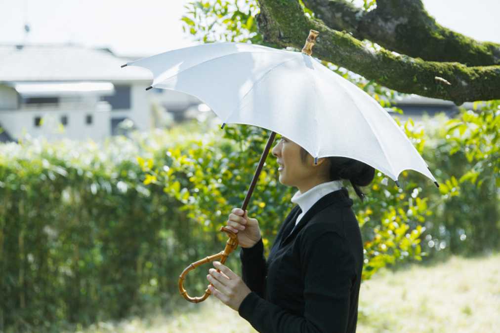 天然竹の手元、可憐なフォルムが美しい日傘は、4代続いたご近所の傘工房「横田洋傘店」夫妻と空櫁のコラボレーションによるもの。お二人の引退により在庫は限られるそうですが、造りも丁寧なのでぜひ実際にふれてみて。