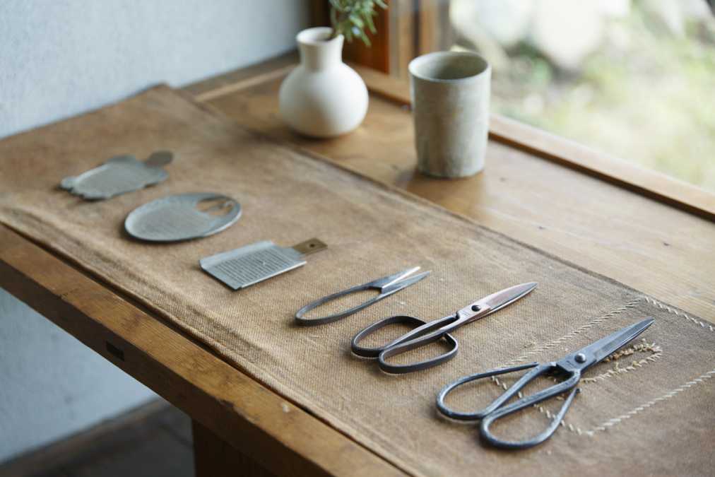 神戸で4代続く「多鹿鋏製作所」が手がける家庭用はさみは、切れ味はもちろん、アンティークのような佇まいが魅力(糸・花用4860円ほか)。埼玉の「大矢製作所」の銅のおろし金は、職人がひと目ずつ刃を起こして造っていて、「驚くほどスムーズに野菜がおろせますよ」と太鼓判。