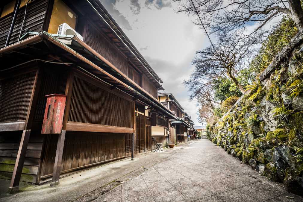 石畳に沿って、風情のある古民家が並びます。
