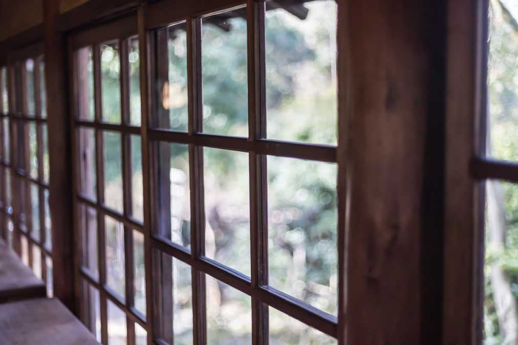 残存数も少ない大正時代に作られた窓ガラスは、人の手によるゆらぎがあり、遠くの風景を美しくゆがめてみせてくれます。