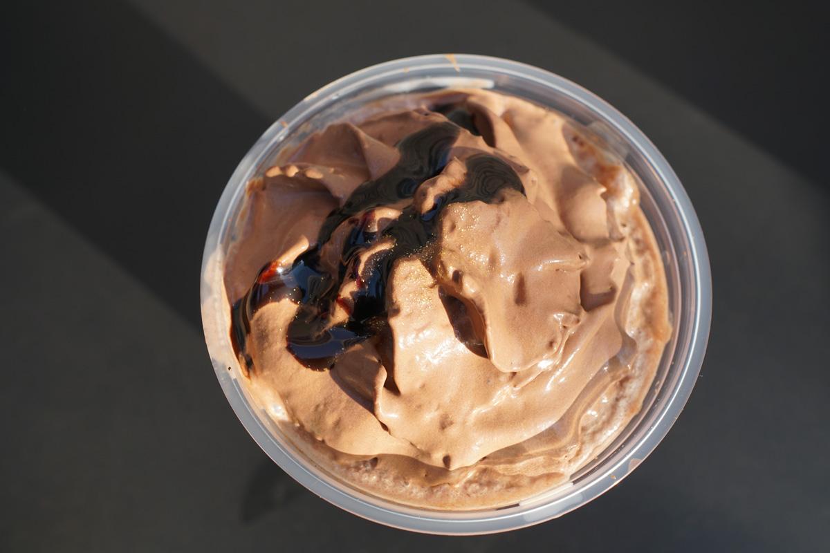 チョコレートホイップをひと口いただきます。…ふわっと濃厚! これだけで完成度の高いスイーツみたい♪