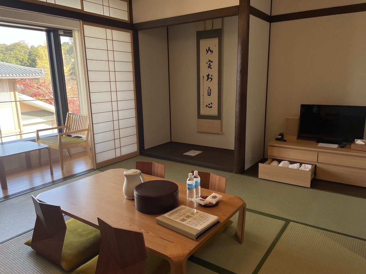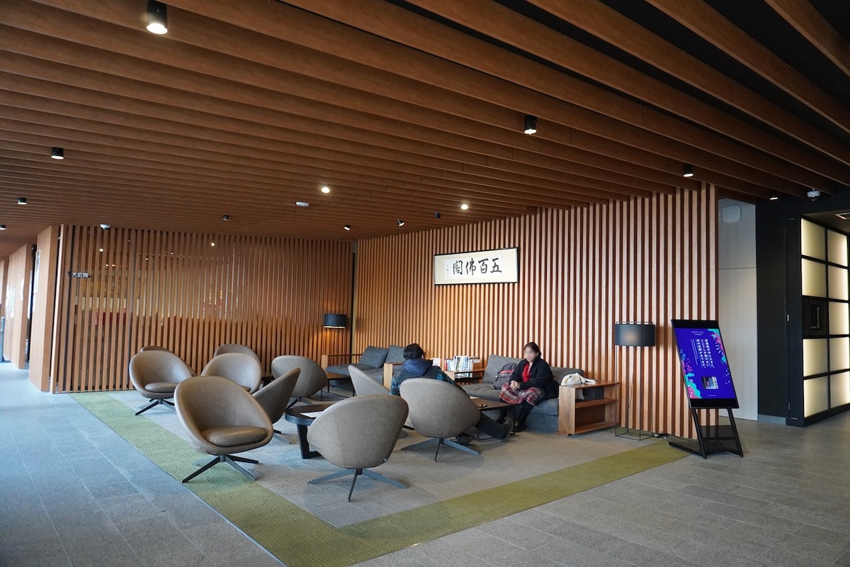 フロントの横には、広くゆったりとしたロビーがあります。ちょっと休憩したり、大きな窓から境内を眺めたり、日常との切り替えに◎。