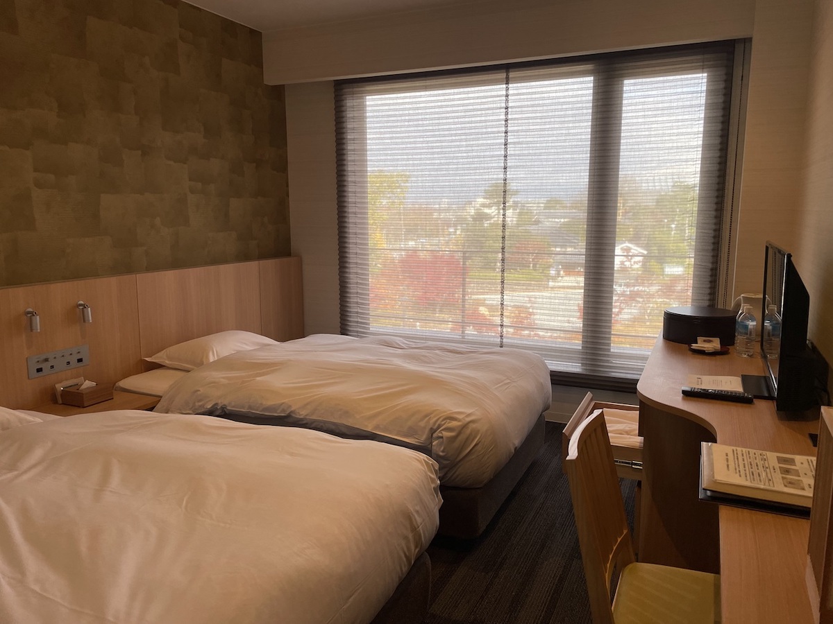 こちらはスタンダードタイプの洋室ツインルーム。すっきりとコンパクトにまとまった、快適な空間です。