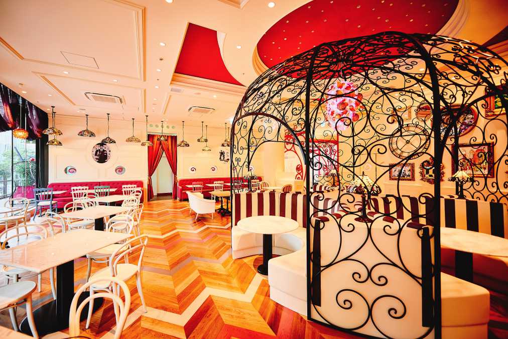おとぎ話の世界観をテーマにした本店の雰囲気を再現し、表参道店も白とピンクを基調に、ニューヨーク本店をイメージしてデコレート。