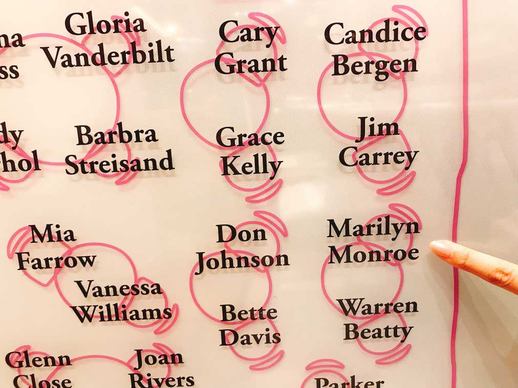 並んでいるのはマリリン・モンローやジョン・レノンなど、誰もがよく知るビッグネームばかり。セレブリティシートを眺めていると、自分もセレブたちの仲間入りを果たした気分が味わえちゃいますね!