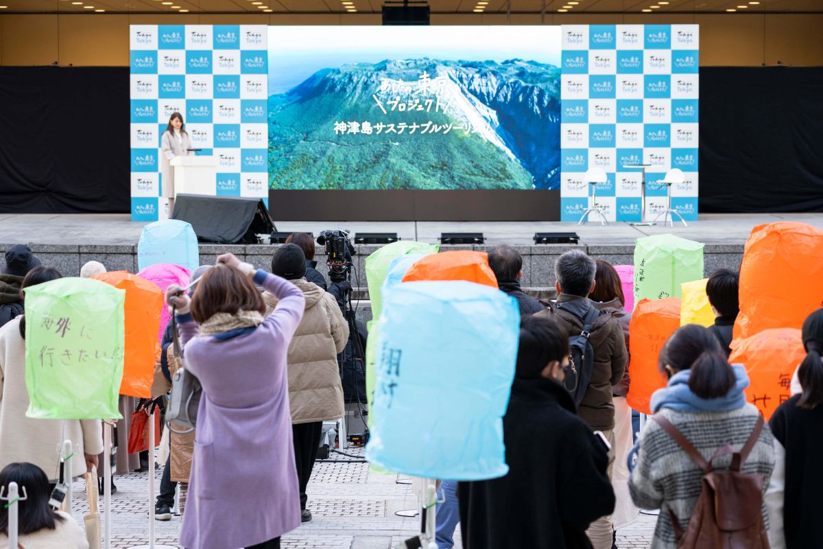 都民に今まで知らなかった東京の魅力に触れてもらい「あしたの東京」を考えるきっかけにしてほしいという思いで、2022年にスタートした「あしたの東京プロジェクト」。今年度、このプロジェクトは開催3年目を迎え、2024年10月は東京の林業について学ぶ「多摩フォレストツーリズム」が、11月は持続可能な観光について学ぶ「神津島サステナブルツーリズム」が行われました。そして今年度のプロジェクトのフィナーレを飾るイベントとして開催されたのが、「東京ランタンセレモニー」です。