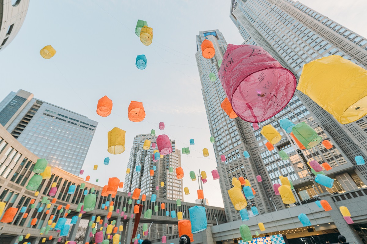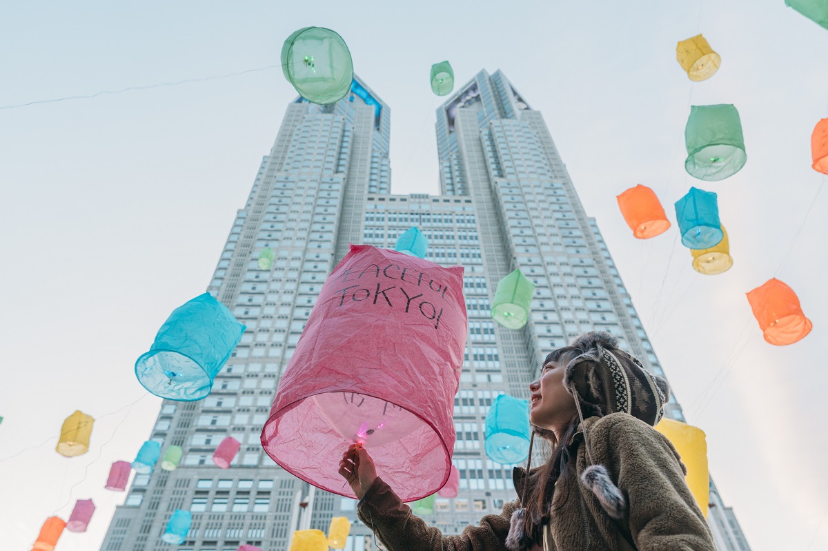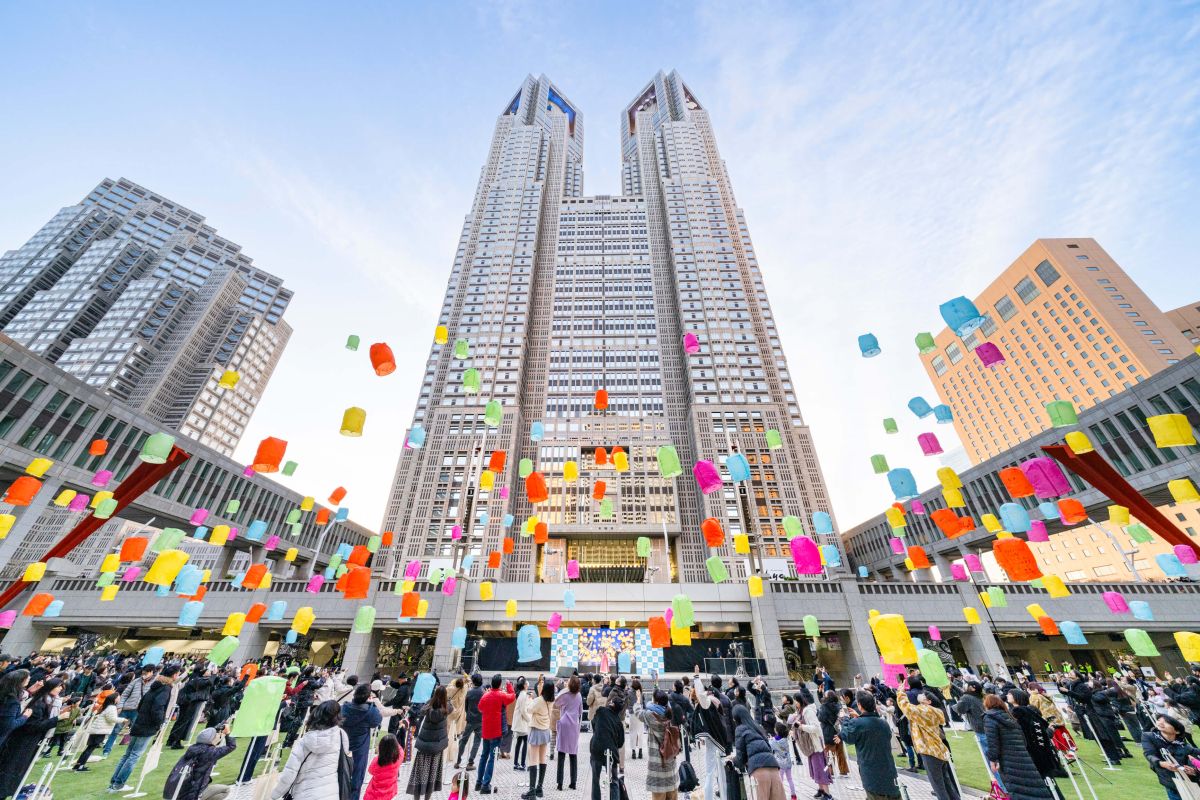 「東京ランタンセレモニー」は、昨年度も行われたイベント。今回のイベントも昨年度と同様、東京都庁 都民広場で実施されました。イベントに参加したのは、事前の応募抽選で当選した人々。多くの参加者がランタン打ち上げに参加しました。