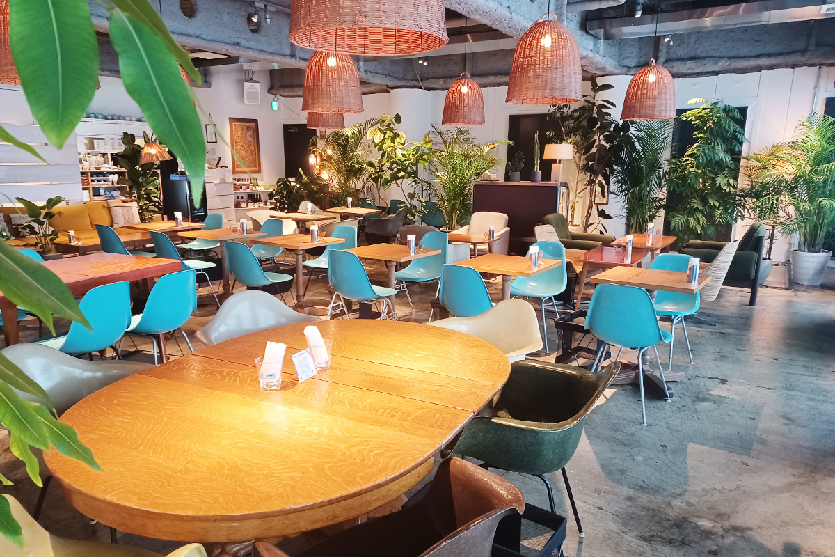 広々とした店内で、席数はなんと約73席! 2人掛けのテーブル席や4人でもゆったり座れるソファ席、大きなダイニングテーブルを囲んだ席もあり、ひとりでの作業やデート、女子会などさまざまなシーンで利用できるのがうれしいポイントです。