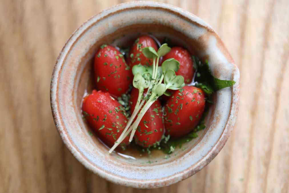 続いて、「ミニトマトのおひたし」180円。ちょこちょこビタミン補給しながら呑めるのがいいですね!