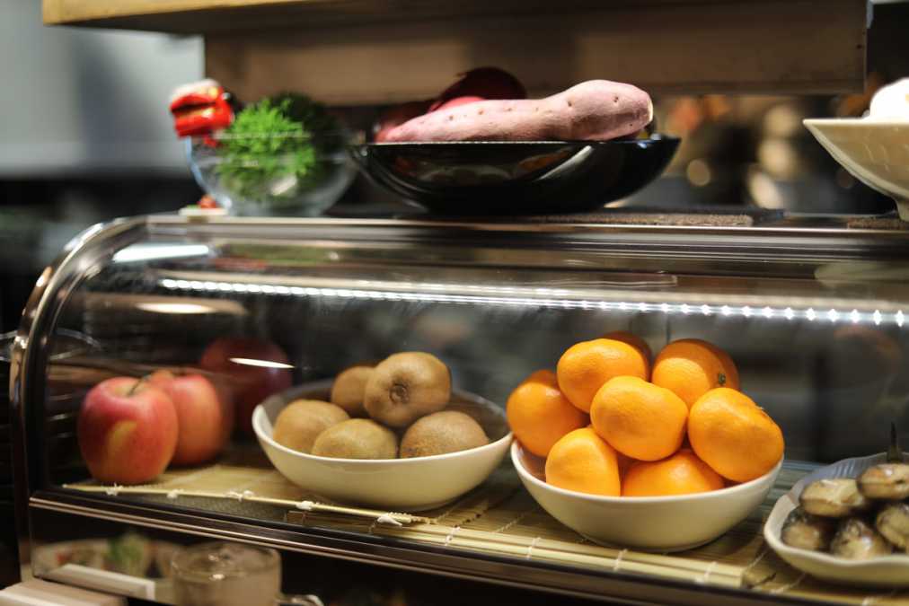 スタッフの目線が細部までいきとどいた店内はとても清潔。新鮮な食材が並べられたショーケースもキラキラしています。