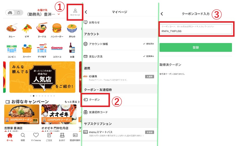 menu(メニュー)のお得なクーポンを使ってデリバリーを楽しもう!